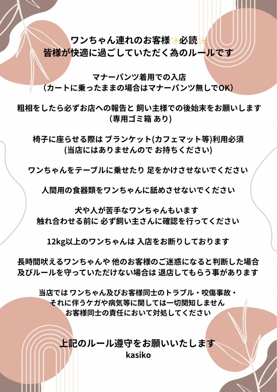 おかげさまで 当店はまもなく開店から20年になります。 時代の変化に伴い 11/5(水)より誠に勝手ながら 店内🐶犬OK (12kg位迄) の営業へ変更いたしました