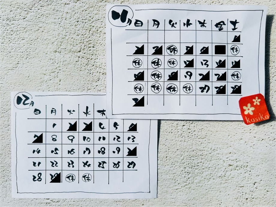 * 日付が「全て 消えてる日」・・・予約満席 又は 貸切予約あり 又は臨時休業