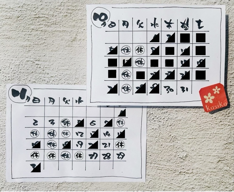 * 日付が「全て 消えてる日」・・・予約満席 又は 貸切予約あり 又は臨時休業