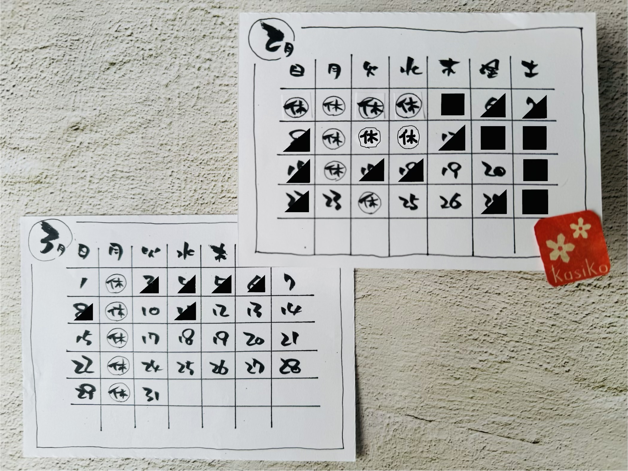 * 日付が「全て 消えてる日」・・・予約満席 又は 貸切予約あり 又は臨時休業